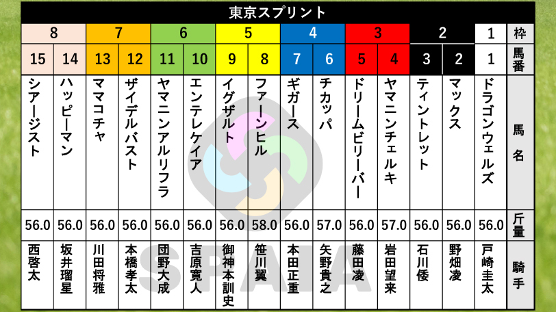 【東京スプリント枠順】JBCスプリント2着のママコチャは7枠13番 交流重賞3勝のヤマニンチェルキは3枠4番2026/04/12 06:00